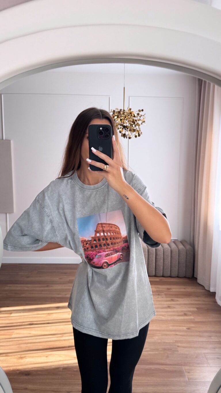T-shirt Oversize z Nadrukiem Roma