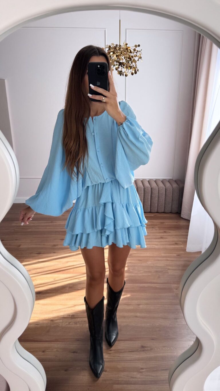Sukienka z Falbanami Boho Niebieska