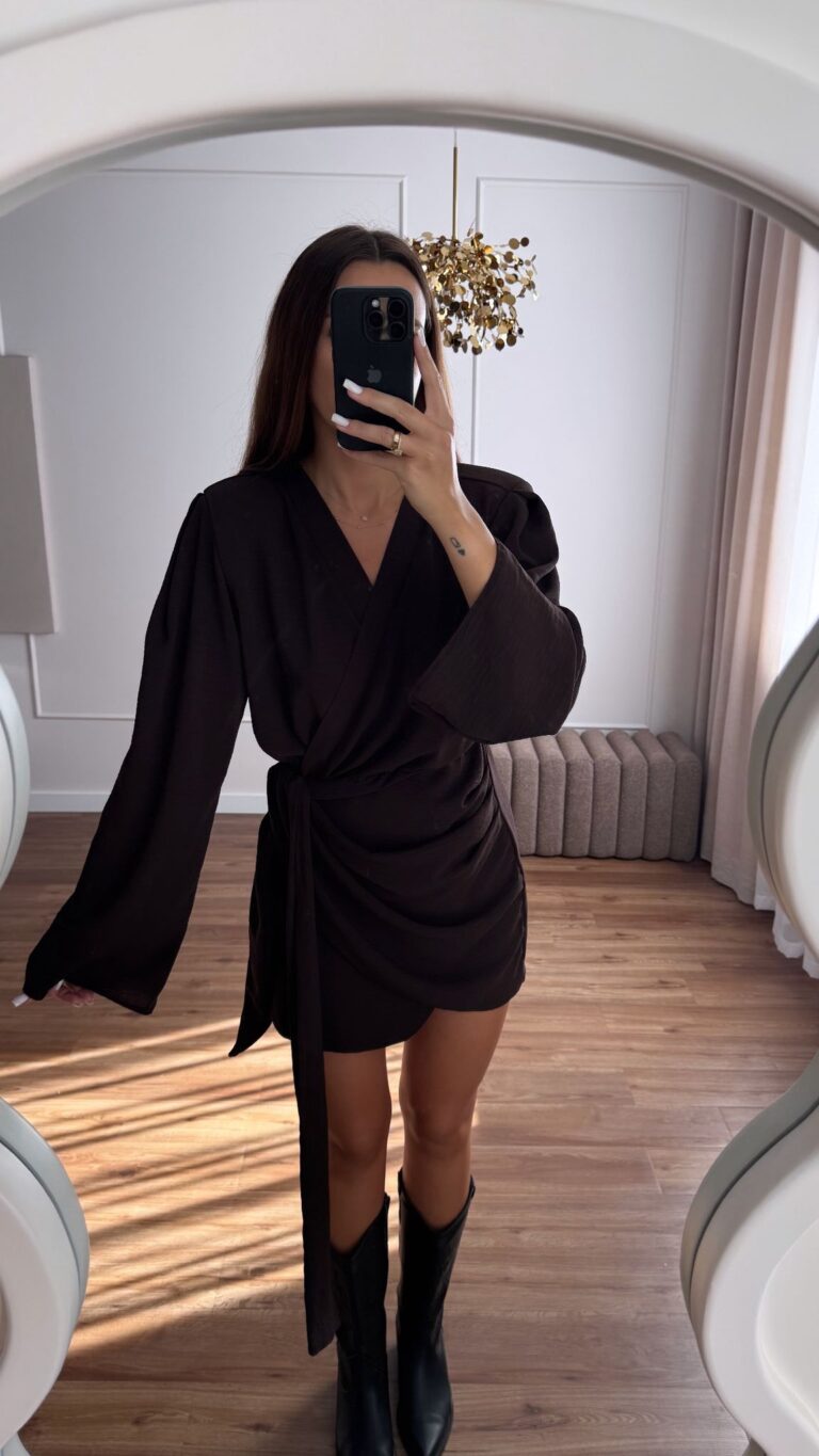 Sukienka z Wiązaniem Kimono Czekoladowa