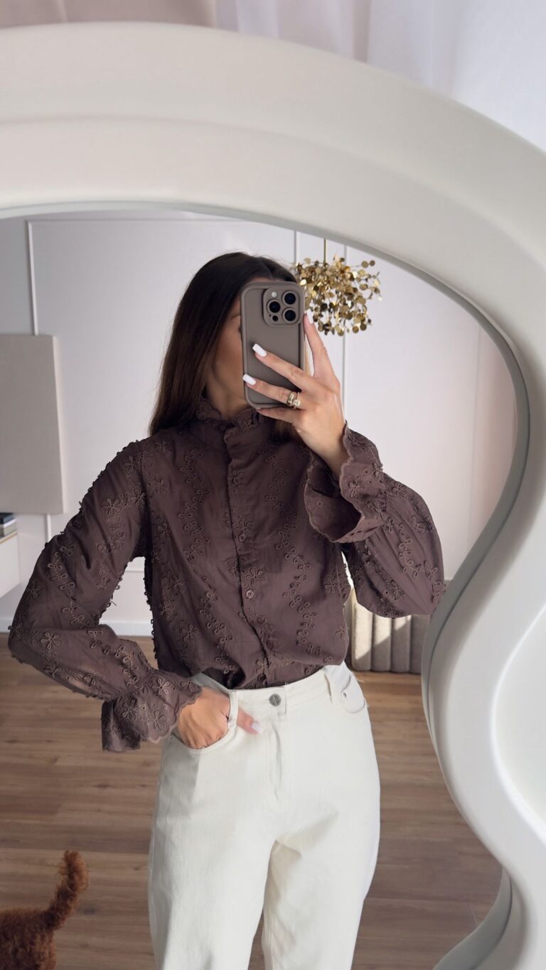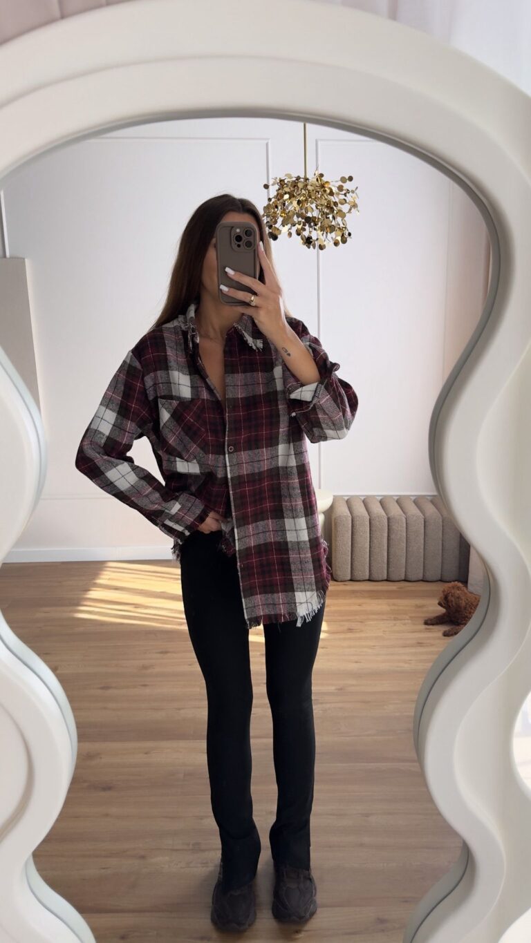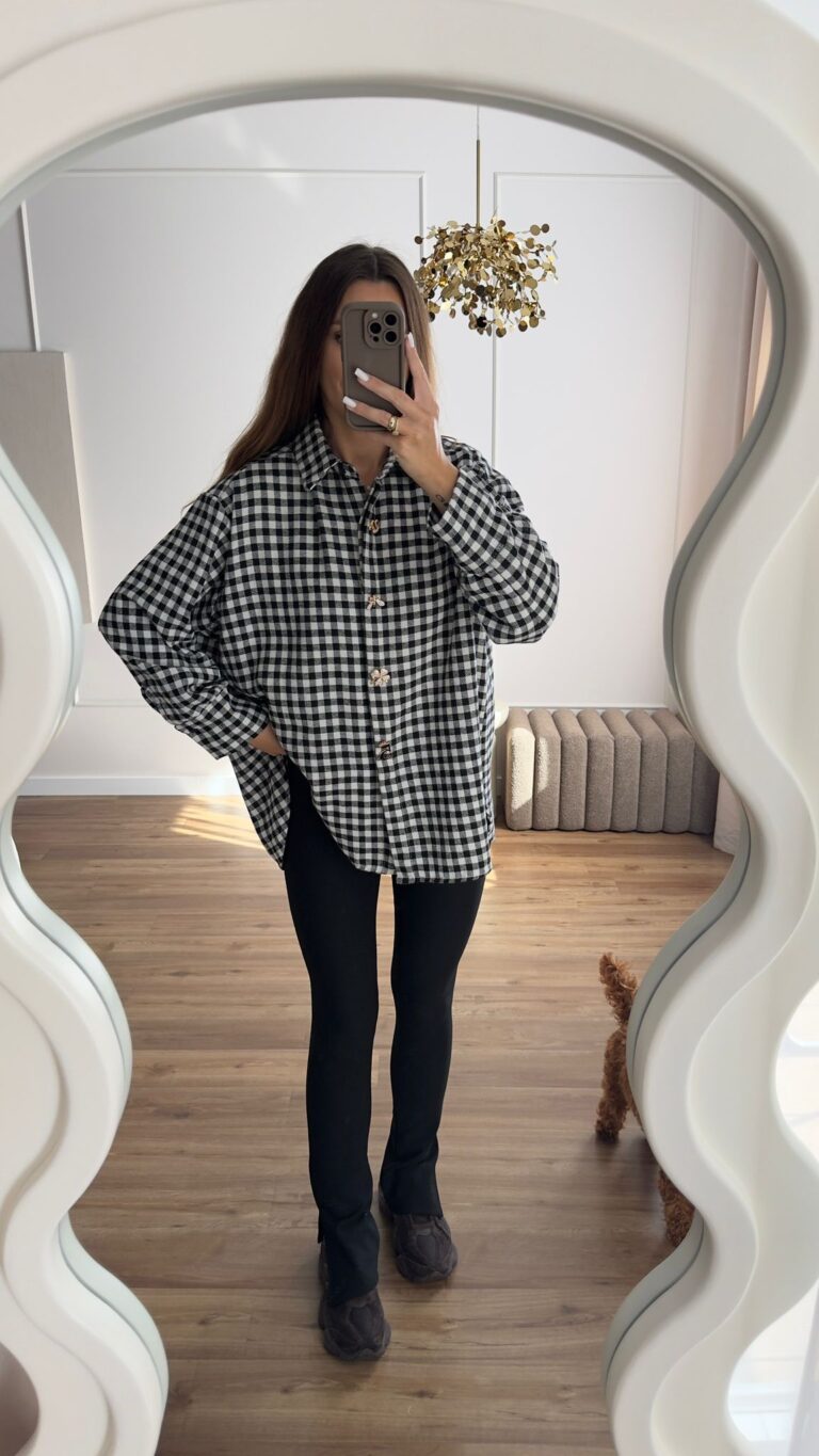 Koszula w Kratę z Biżuteryjnymi Guzikami