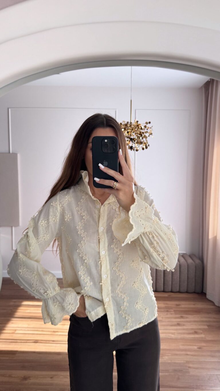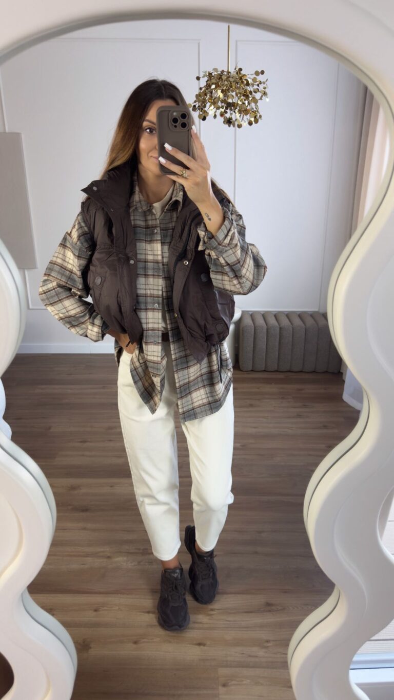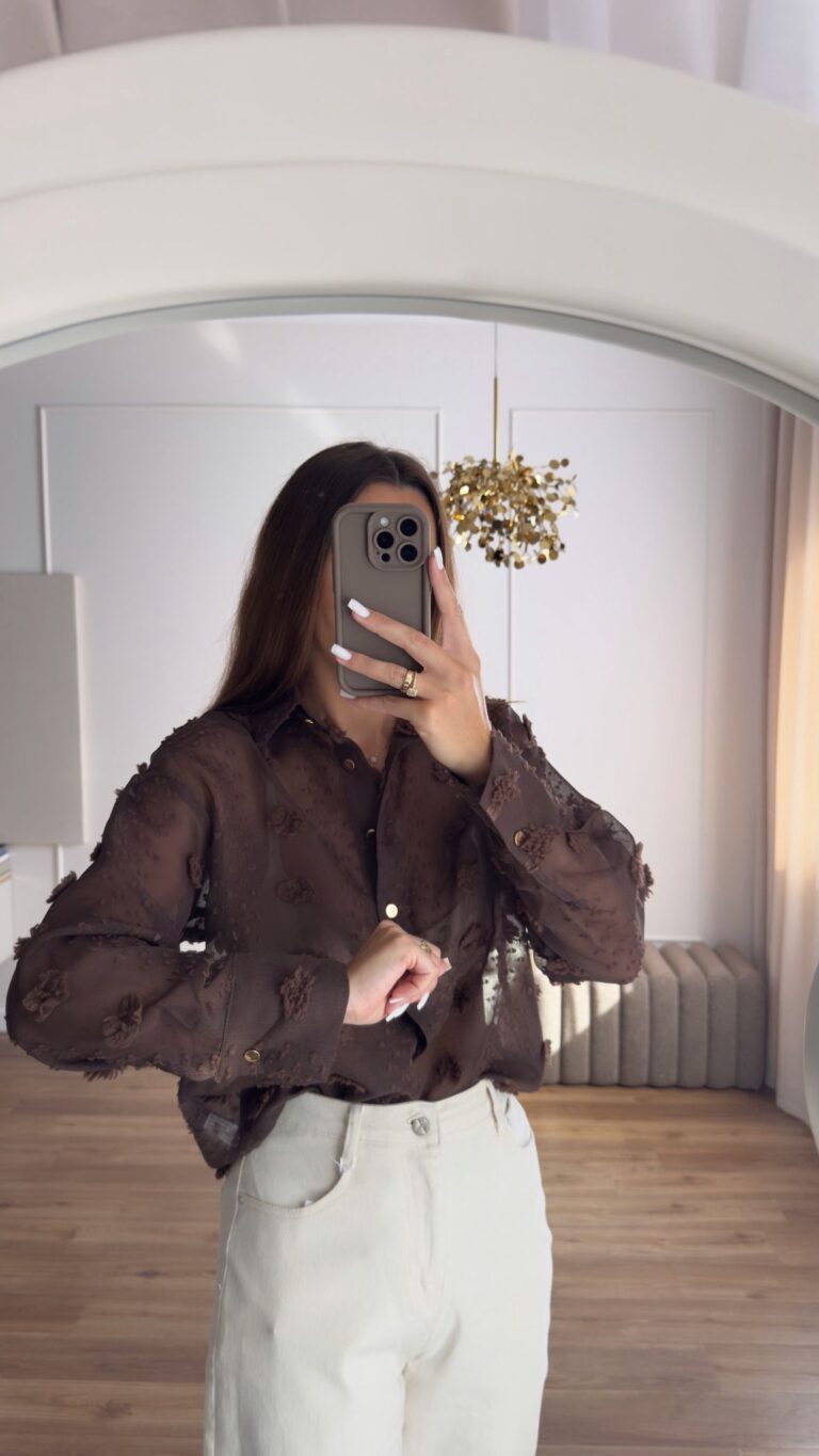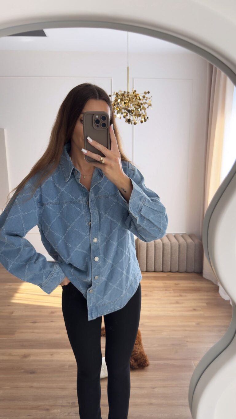 Koszula w Kratę z Biżuteryjnymi Guzikami