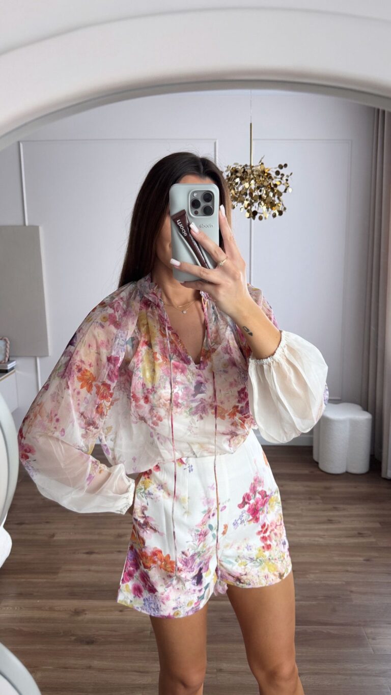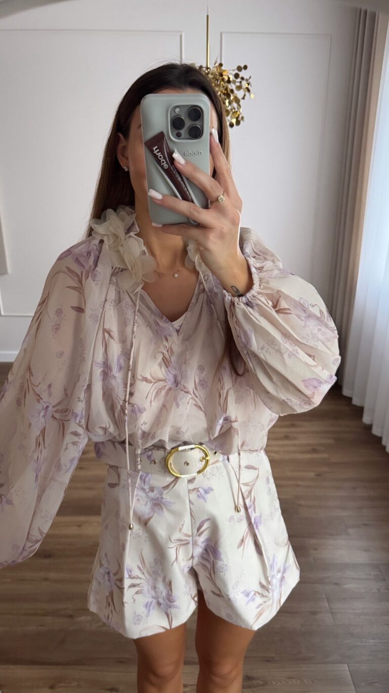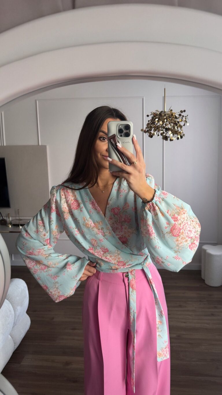 Bluzka wiązana w kwiaty z szerokimi rękawami Jolie