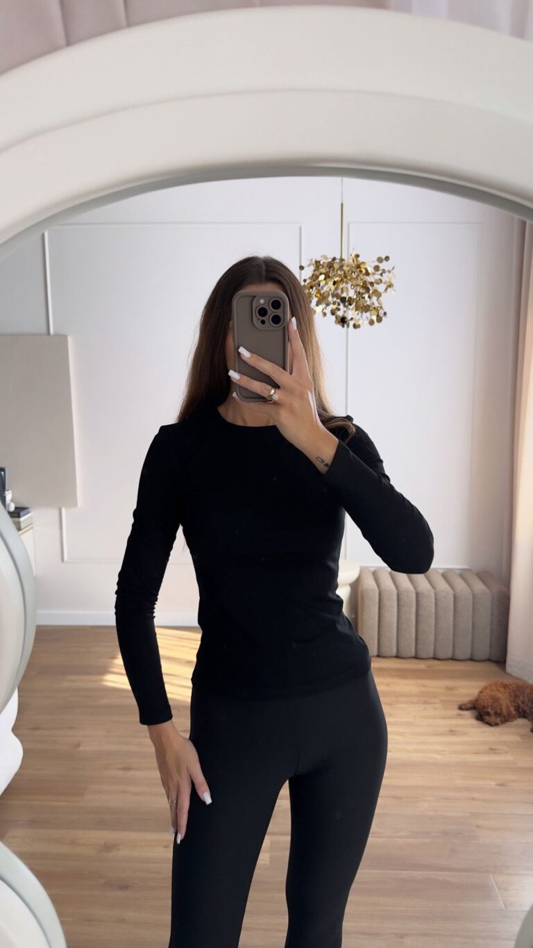 T-shirt Basic z Długim Rękawem Czarny