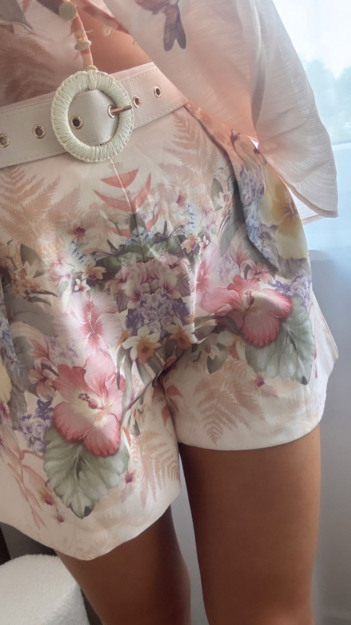 Lekkie, zwiewne i niezwykle kobiece szorty które idealnie wpisują się w letnie trendy. Szorty zachwycają delikatnym, kwiatowym wzorem. Do zestawu dołączony jest pasek.