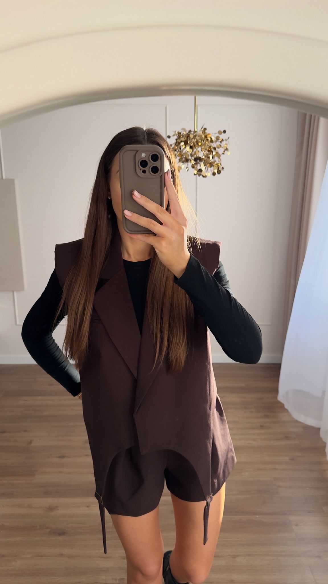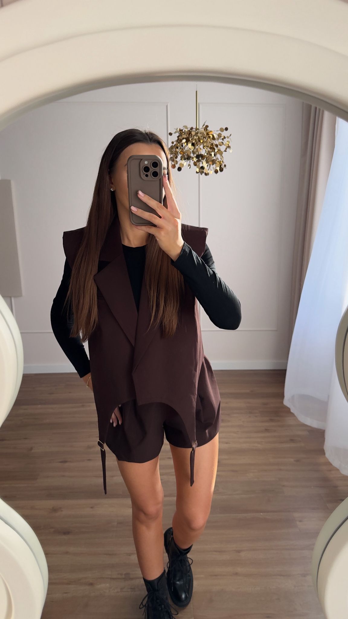 Kamizelka z ozdobnymi paskami z przodu. Oversize krój, posiada wszyte poduszki.