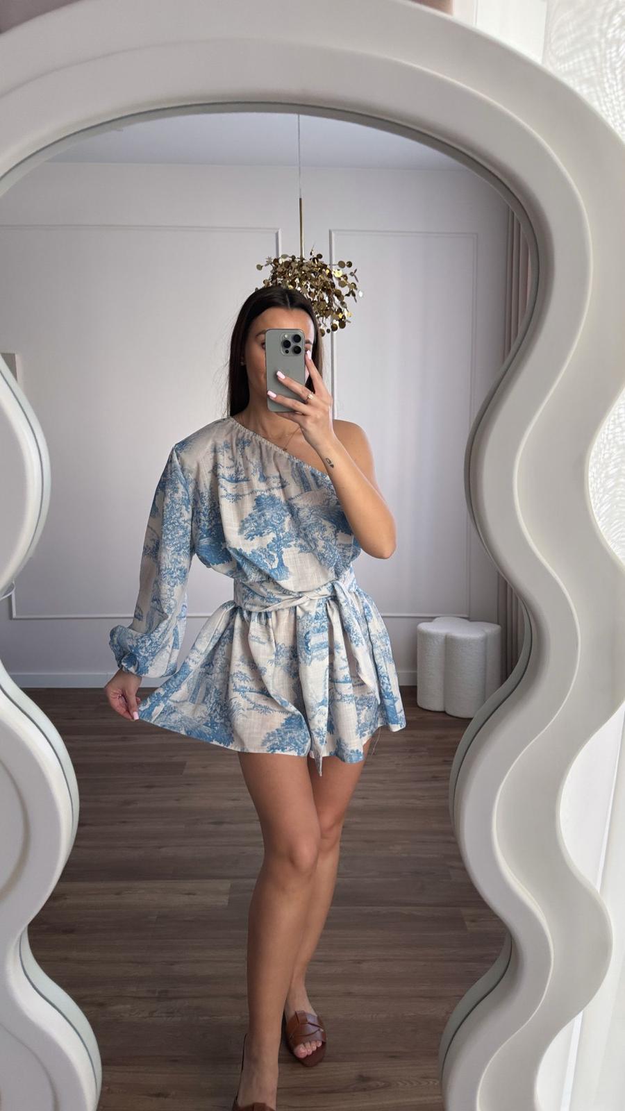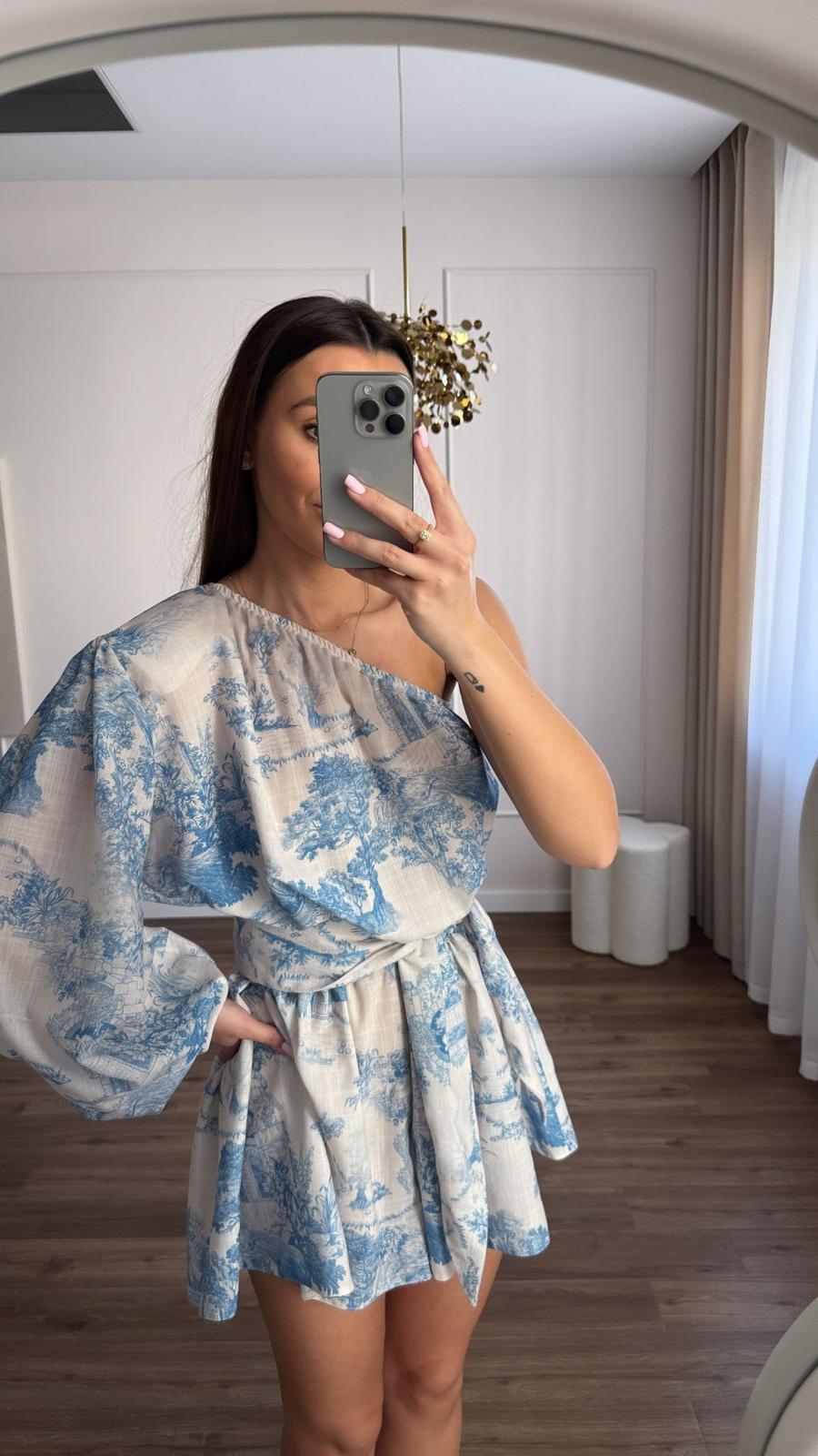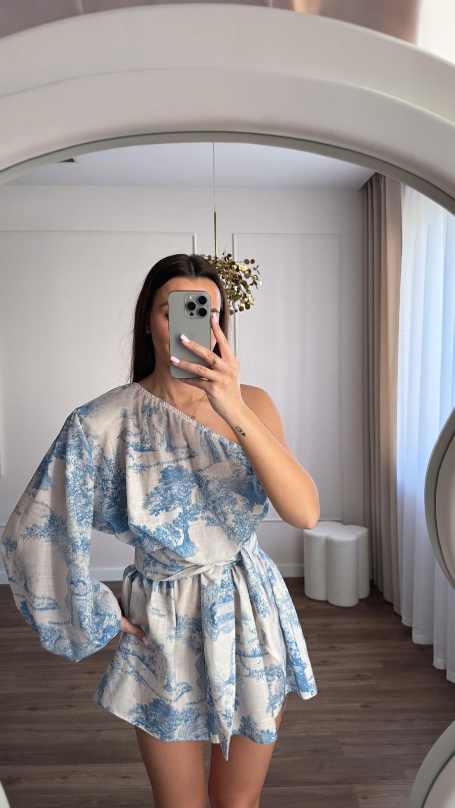 Stylowy kombinezon letni na jedno ramię z krótkimi spodenkami to idealna propozycja na ciepłe dni. Wykonany z lekkiego, przewiewnego materiału, zapewnia komfort noszenia nawet w największe upały. Asymetryczny krój z odkrytym ramieniem nadaje stylizacji wyjątkowego charakteru i subtelnej elegancji. Elastyczna talia podkreśla sylwetkę, a luźne nogawki zapewniają swobodę ruchów. Doskonały wybór na wakacyjne spacery, spotkania z przyjaciółmi czy letnie imprezy.