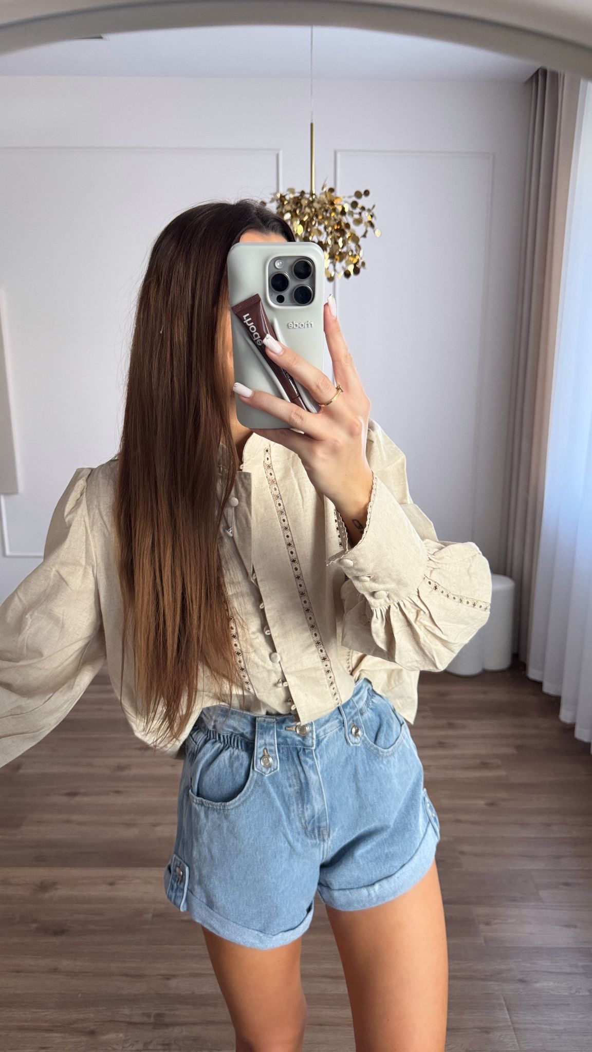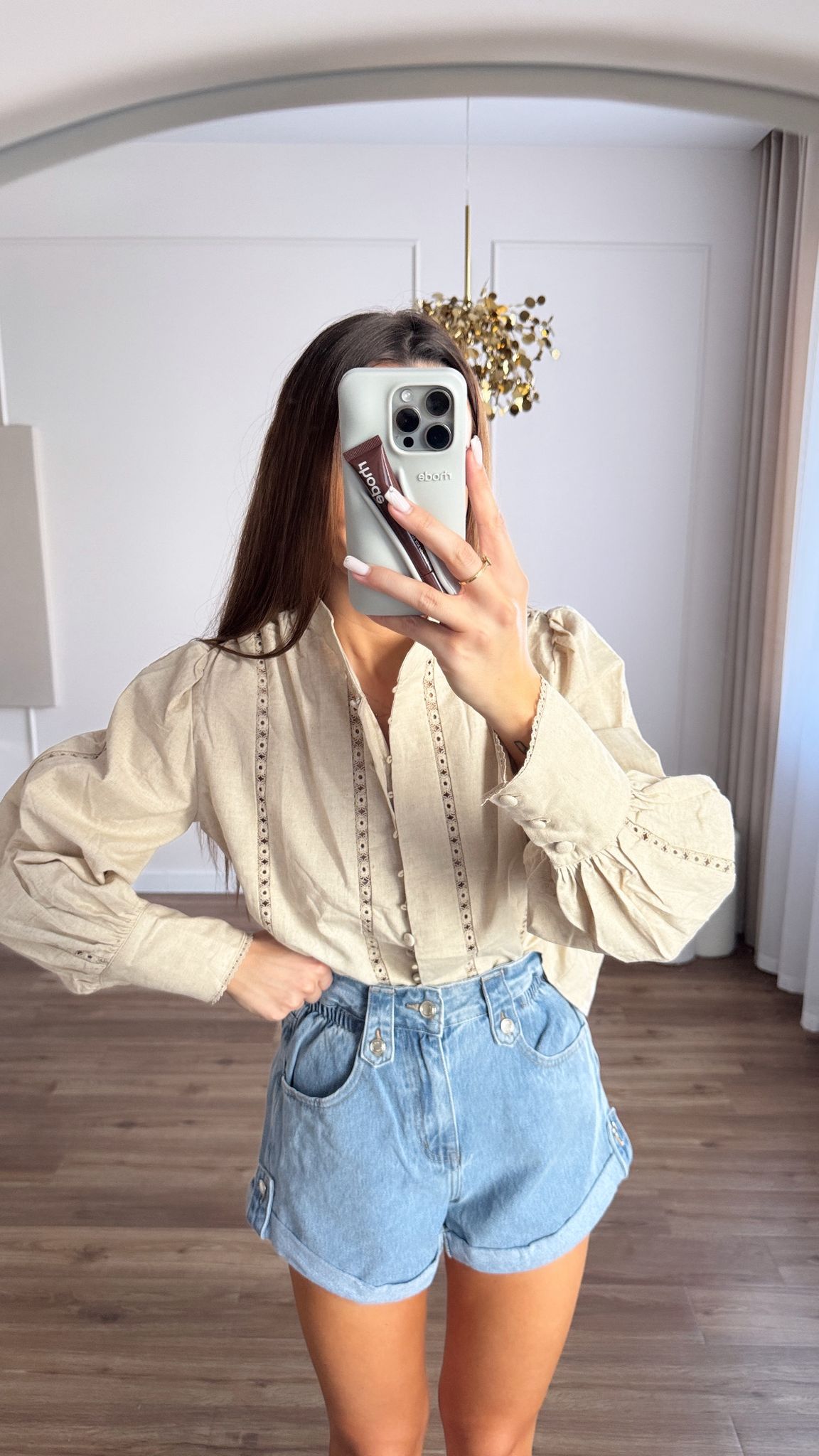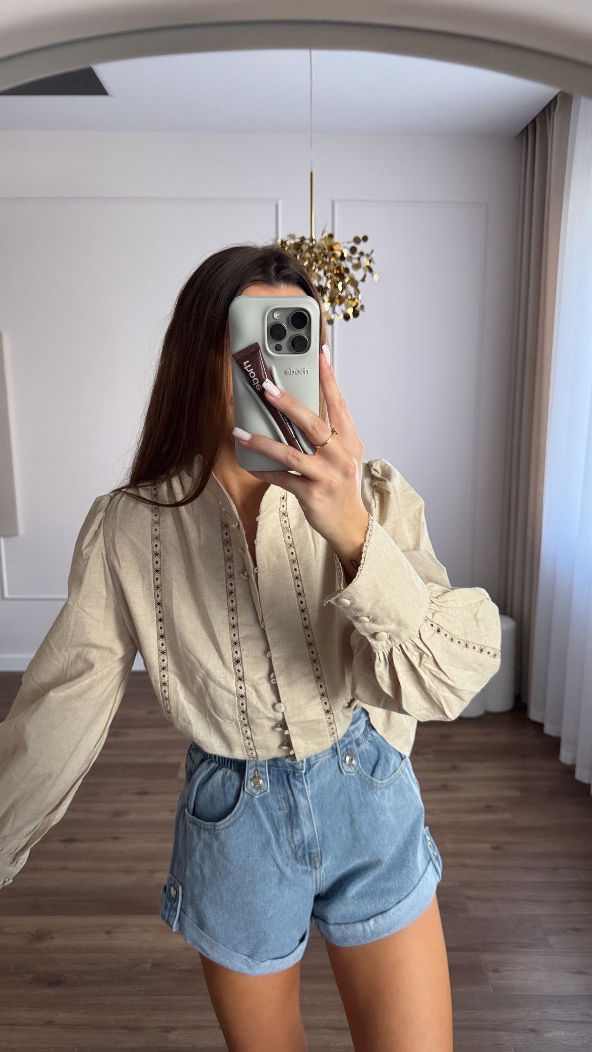Beżowa Koszula Lniana z Ażurowymi Zdobieniami – Klasyczna i Stylowa