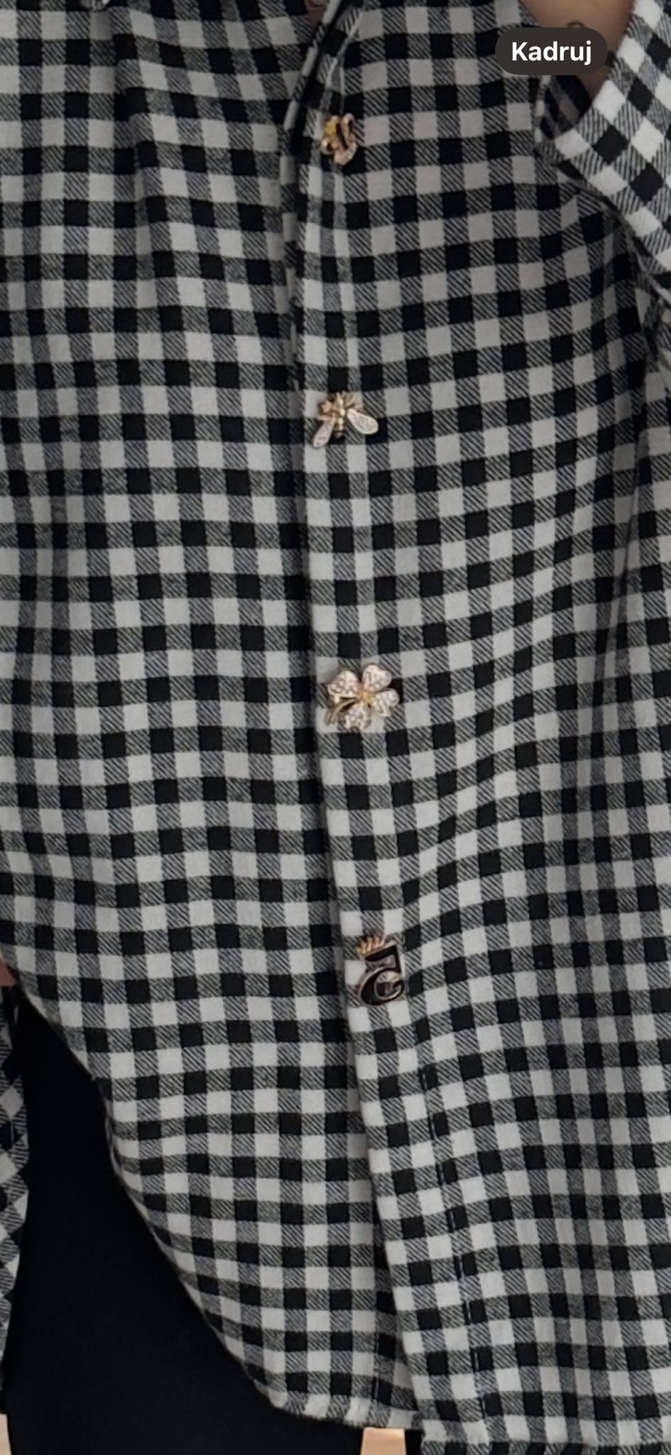 Koszula o dłuższym kroju, zapinana na całej długości na biżuteryjne guziki co podkreśla jej wyjątkowość.
