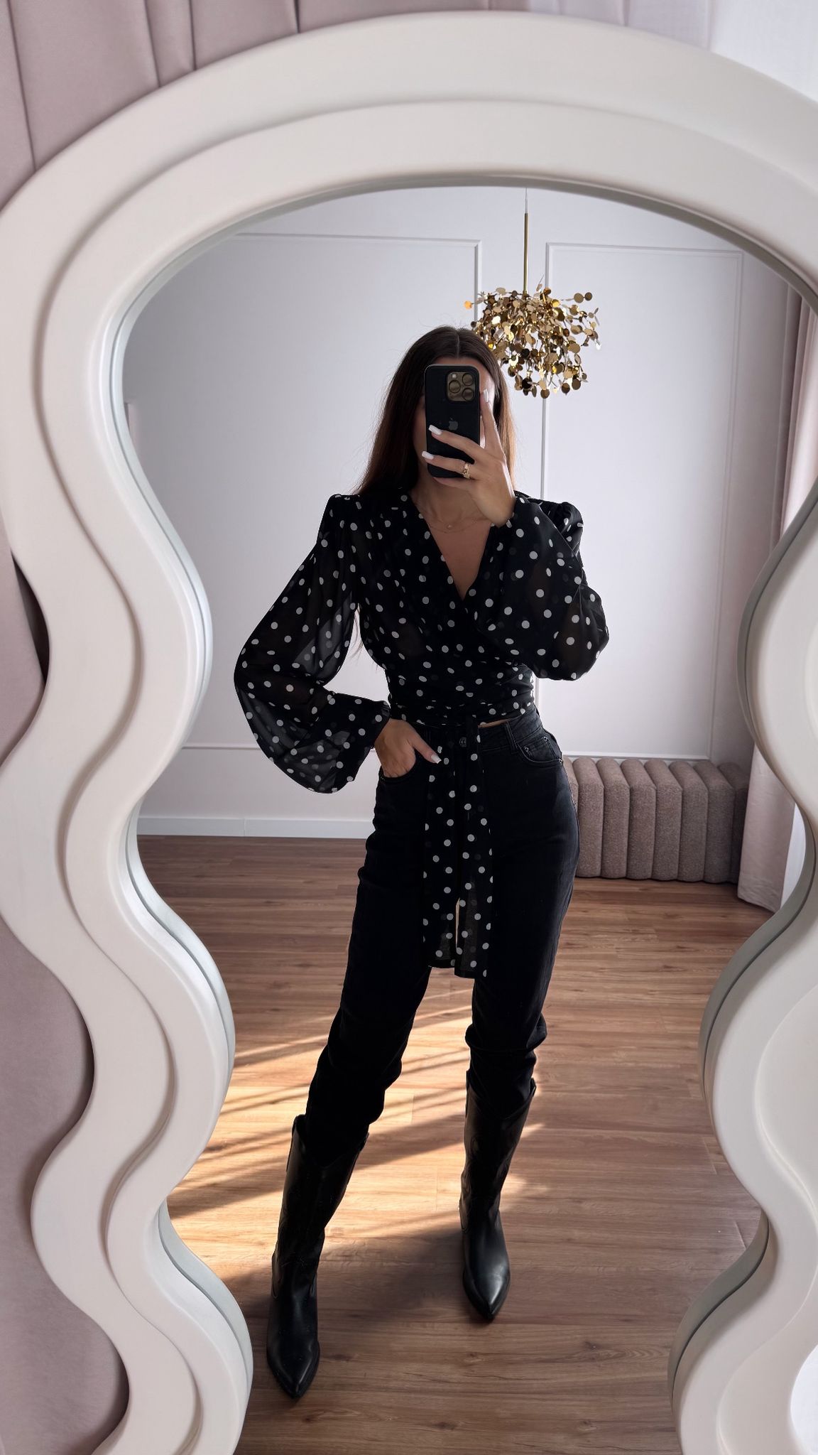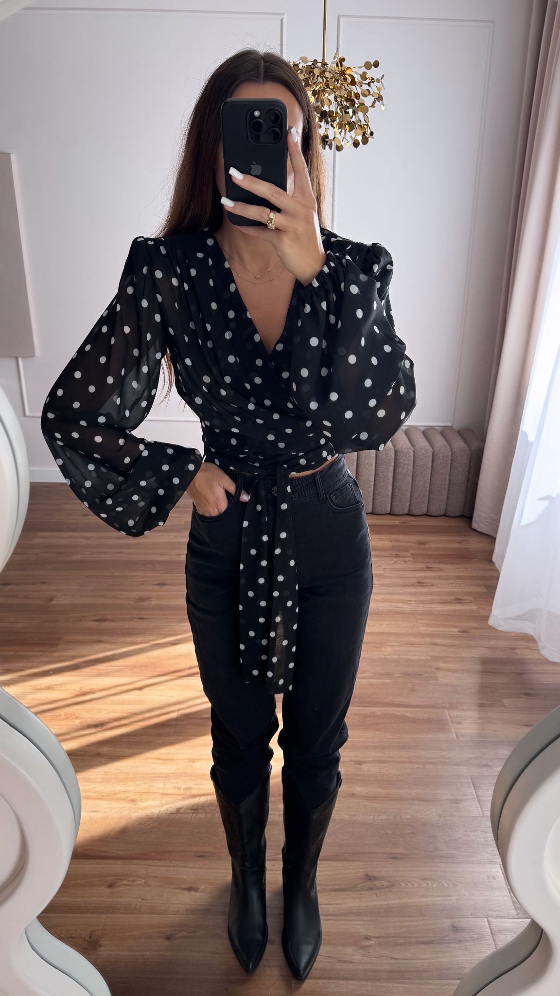 Koszula wiązana w talii z szerokimi rękawami.