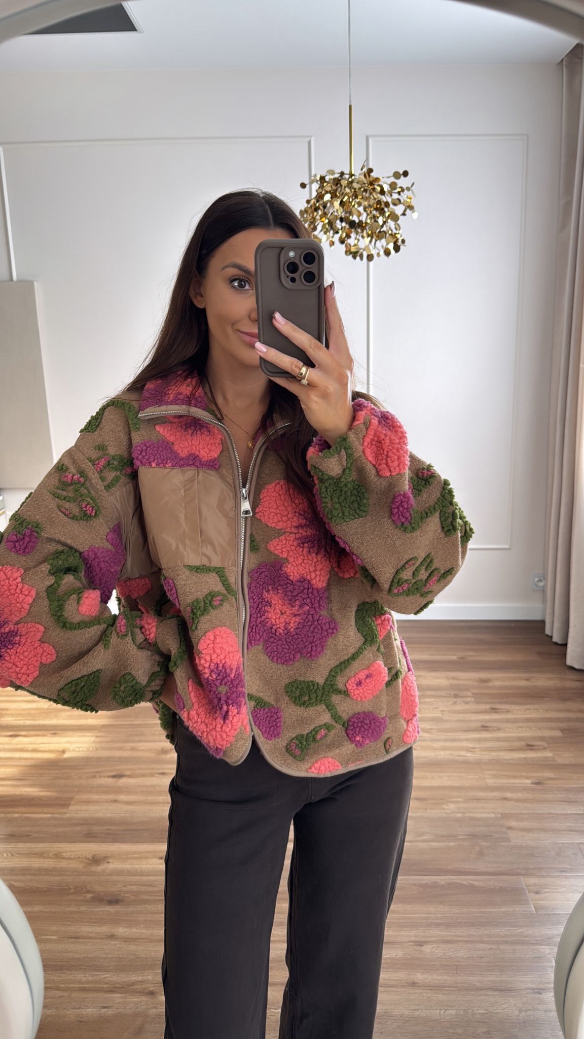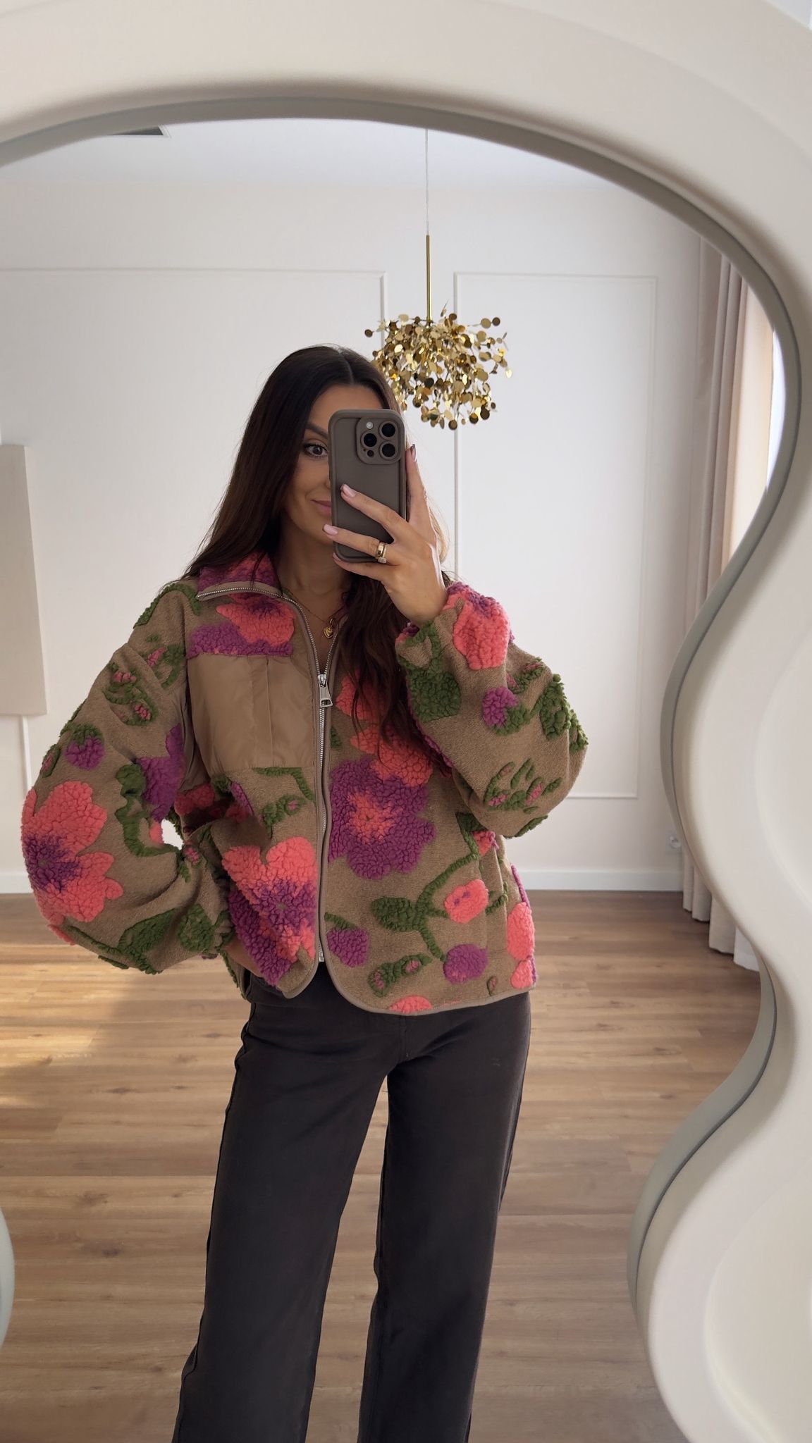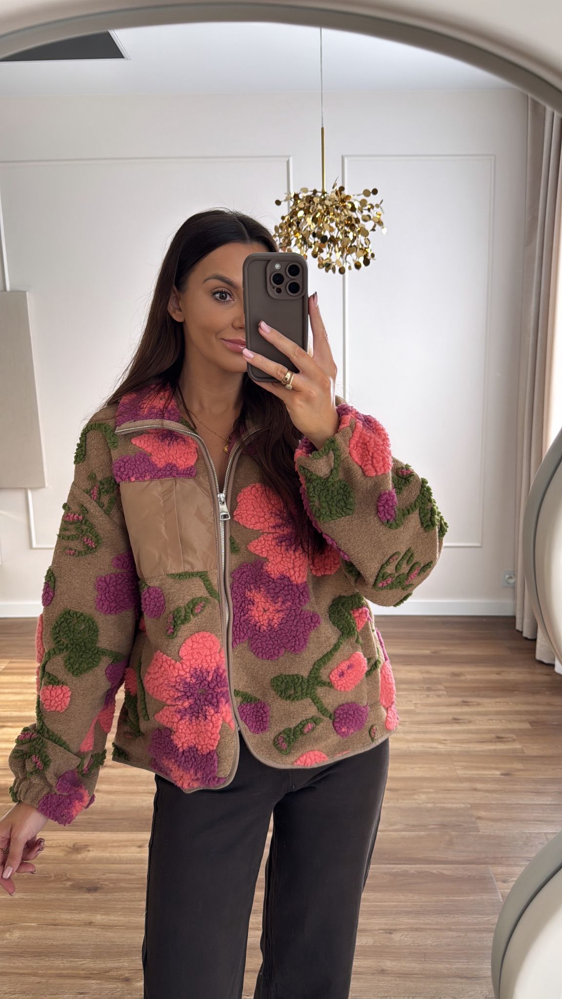 Kurtka polarowa, bluza zapinana na ekspres. Wzór 3D, ozdobna kieszeń. Krój oversize, miękkie wykończenie.