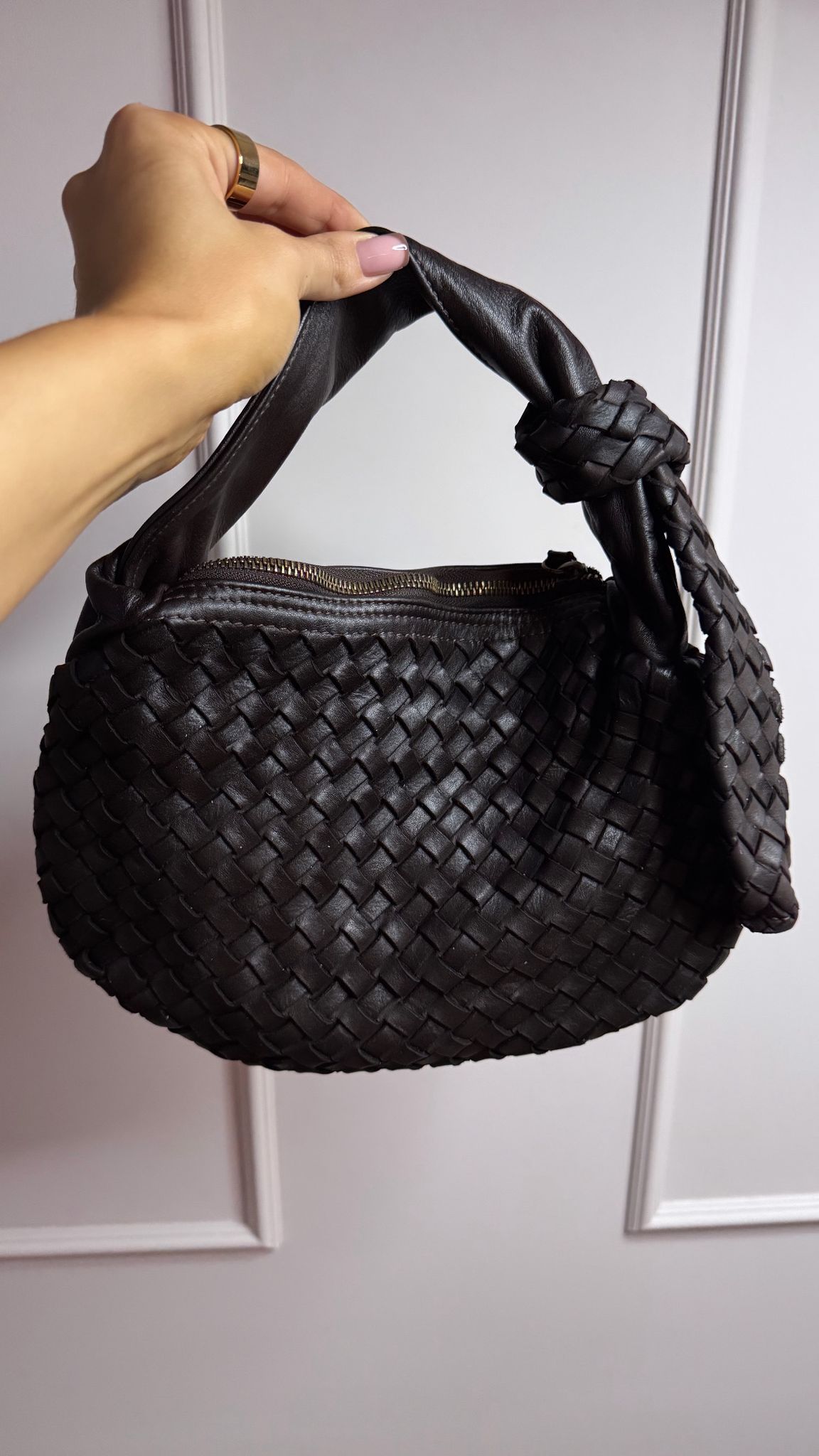 Skórzana torebka pleciona Holly Brąz