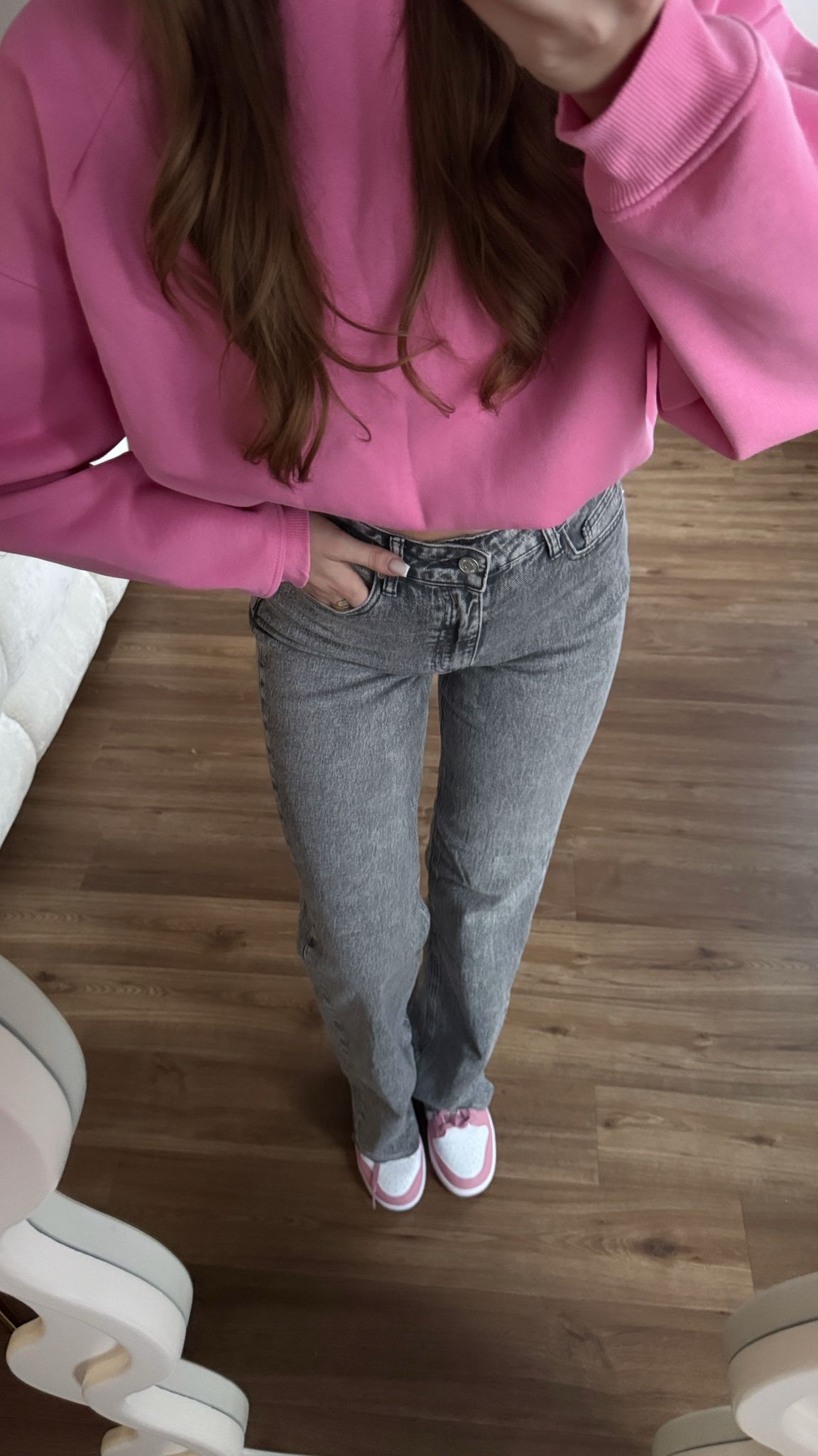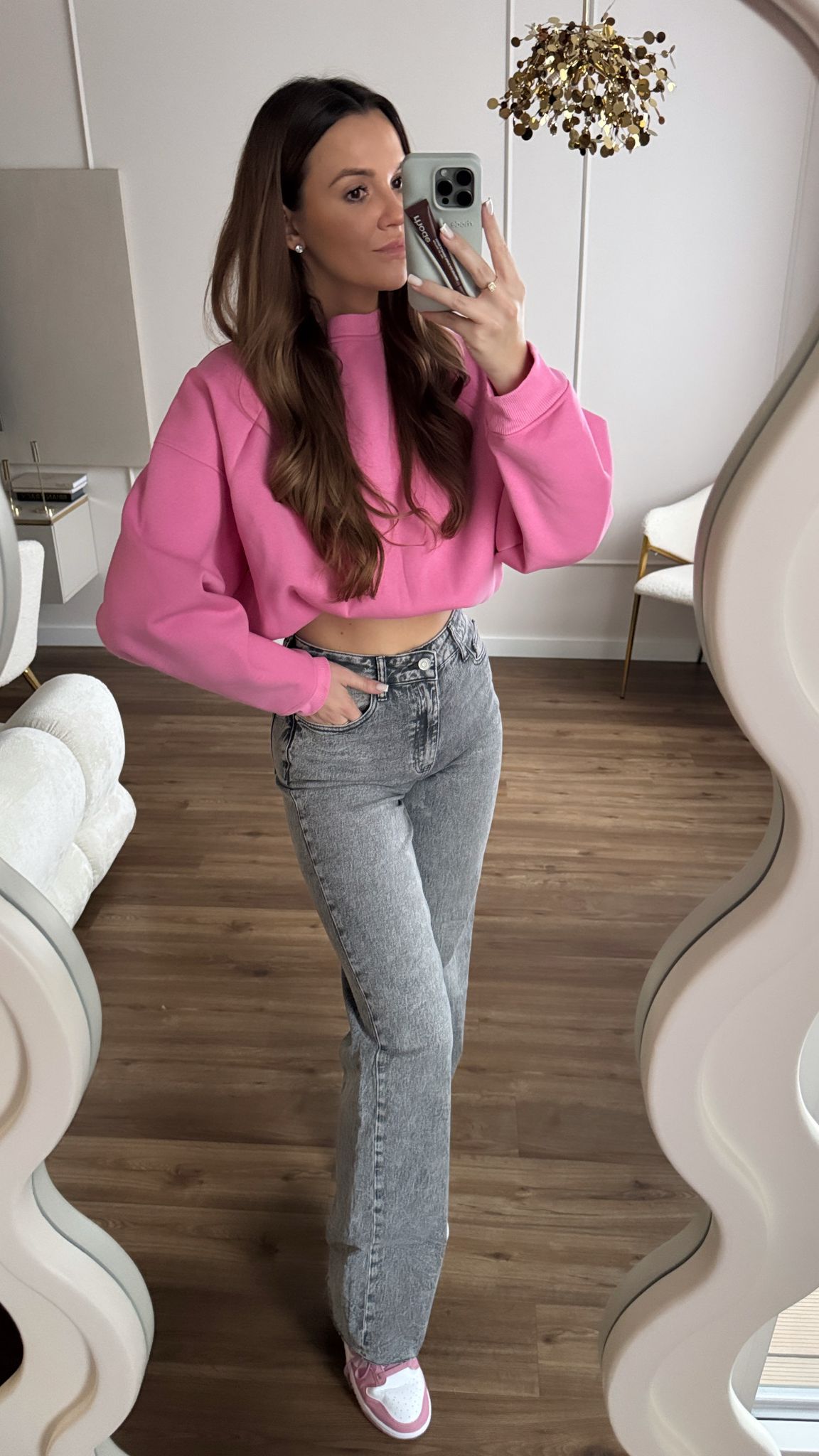 Spodnie jeansowe z wysokim stanem typu wide leg tall. Proste nogawki, surowo zakończone. Idealnie pasują do stylizacji sportowych oraz casualowych. Dwie kieszenie z tyłu. Spodnie idealne dla wysokich (model tall) oraz niskich osób (możliwość skrócenia poprzez surowe wykończenie nogawki). Wysoki stan idealnie opinają talię oraz biodra.