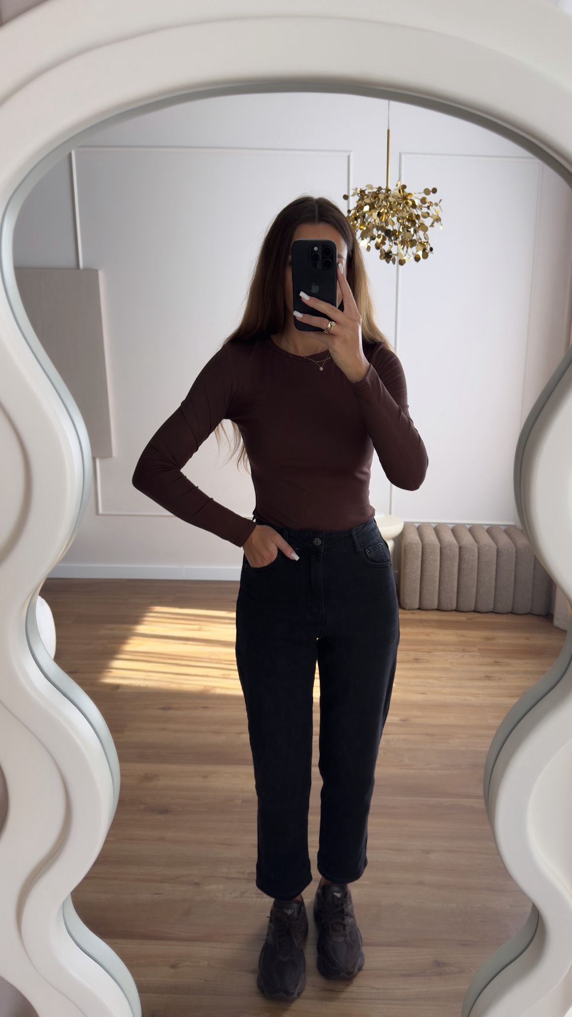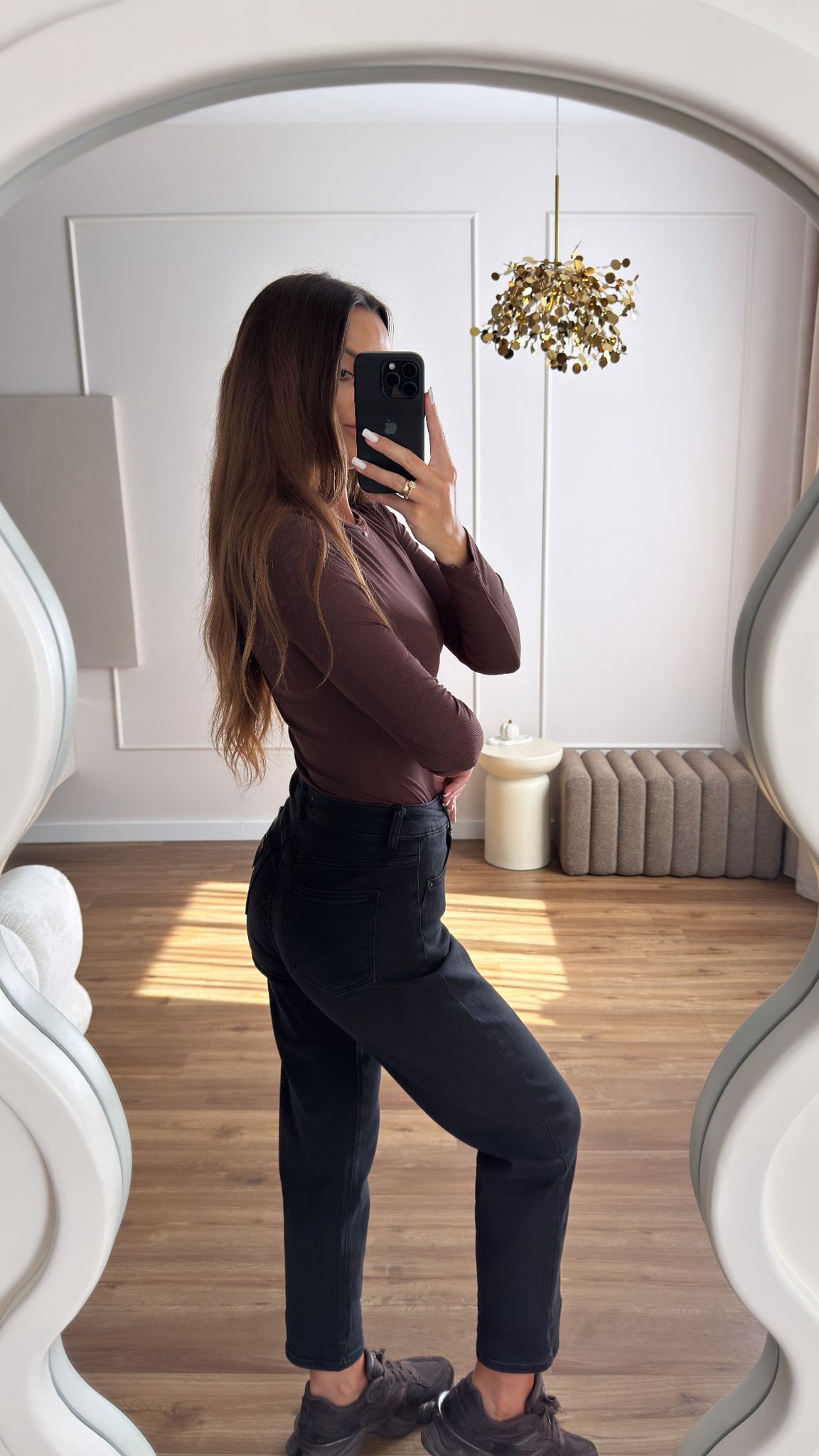 Czarne, jeansowe spodnie o modnym kroju. Idealnie sprawdzą się do botków czy sneakersów. Z tyłu dwie, klasyczne kieszenie. W zestawie pasek.