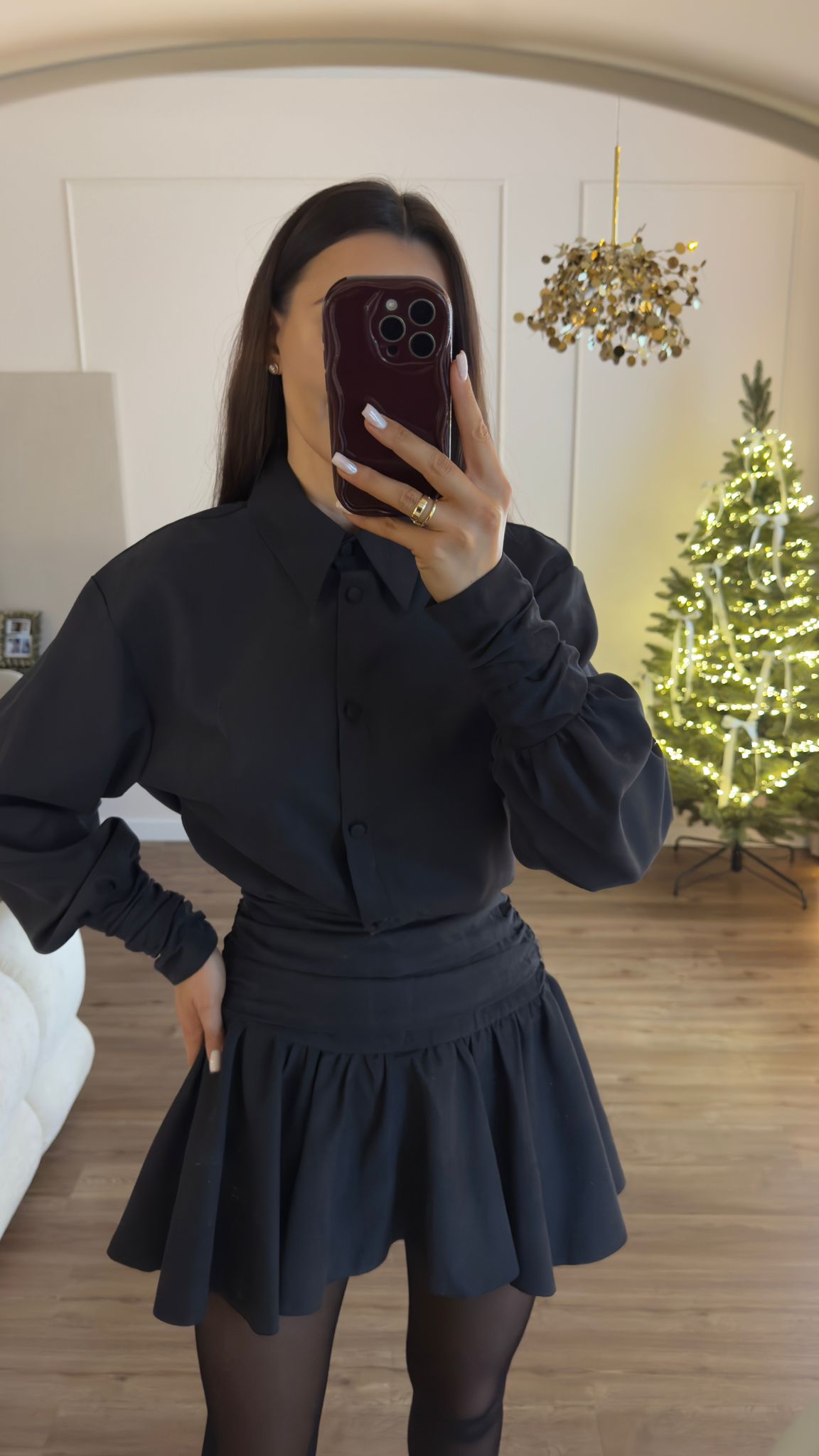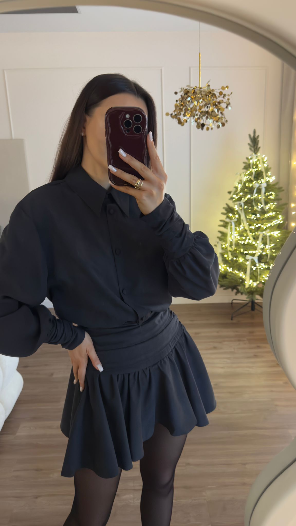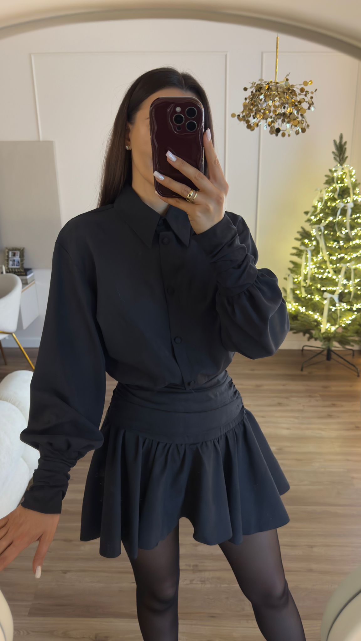 Sukienka o długości mini. Zapinana na guziki oraz kryty suwak z boku. Sukienka posiada ukryte szorty.