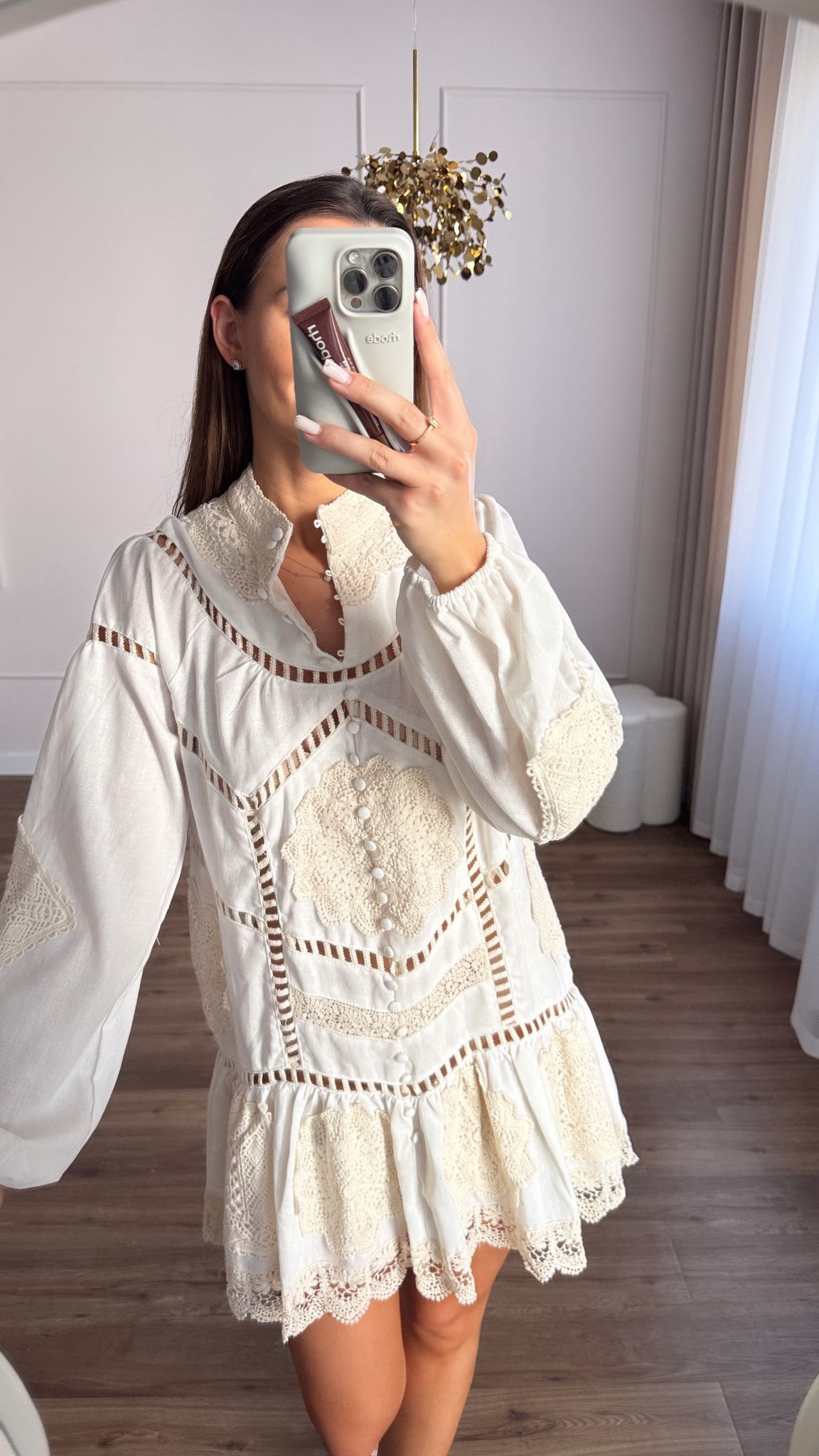 Biała Sukienka Lniana z Koronką – Boho Lekkość na Lato