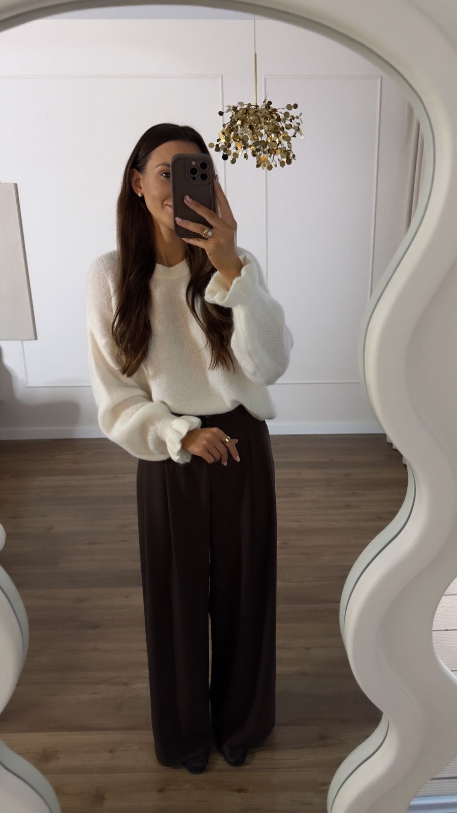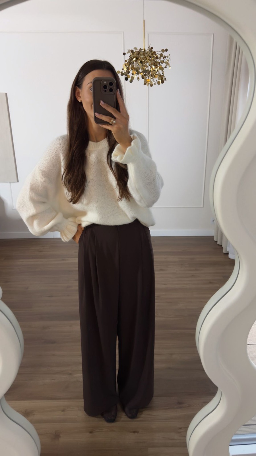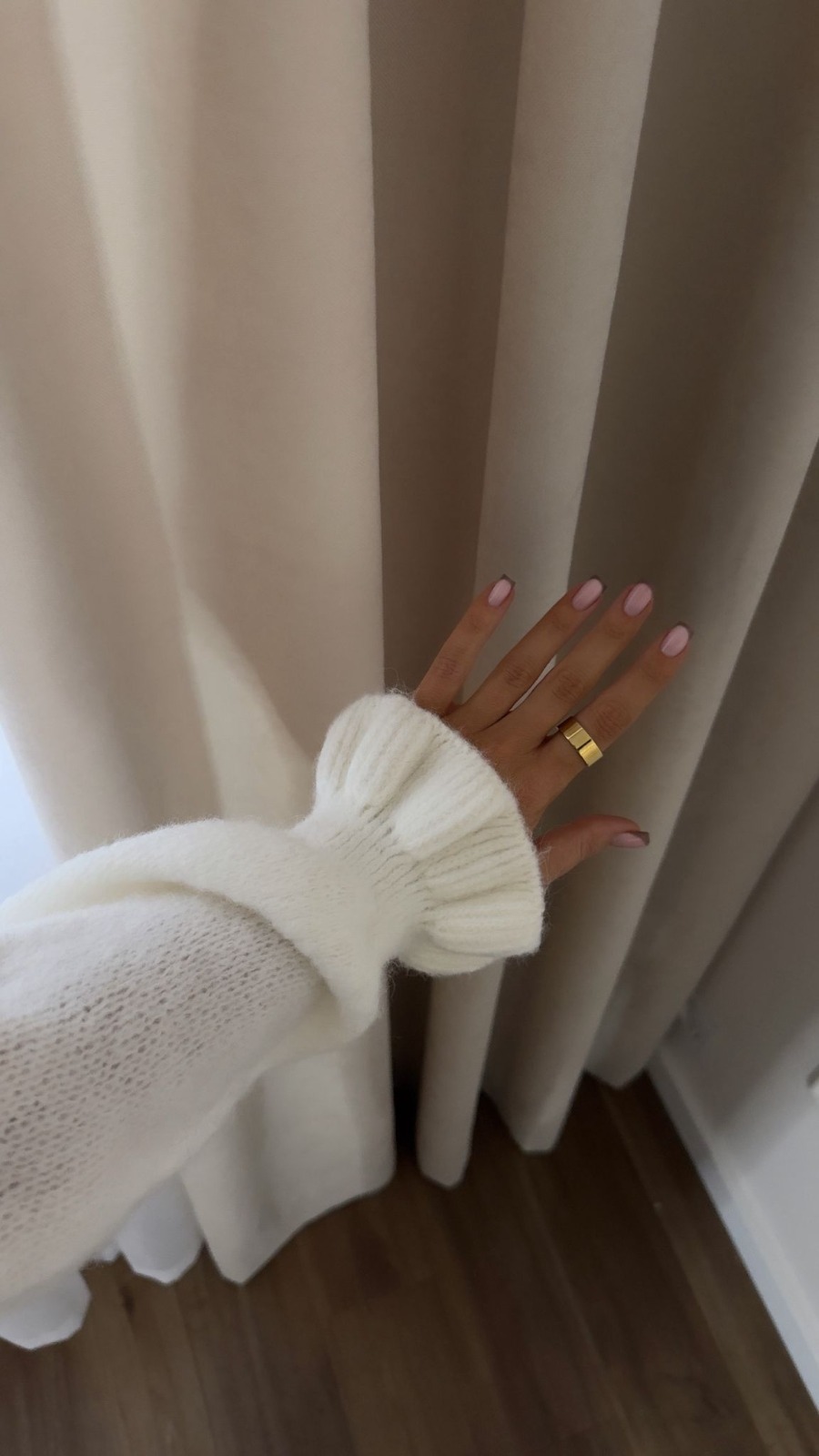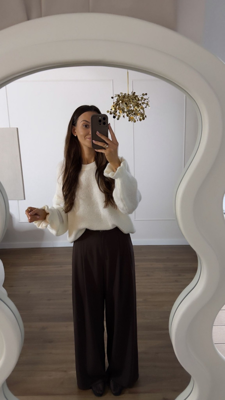 Sweter z domieszką wełny i alpaki. Klasyczny, ponadczasowy krój z okrągłym dekoltem i dekoracyjnymi falbankami przy rękawach.
