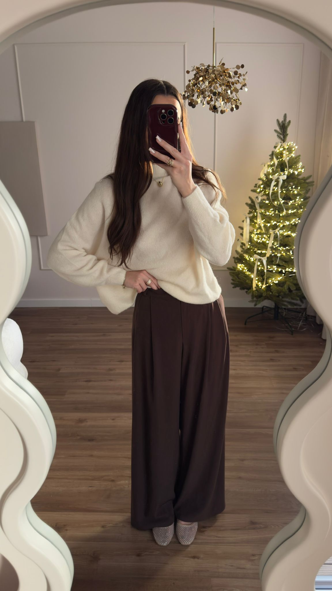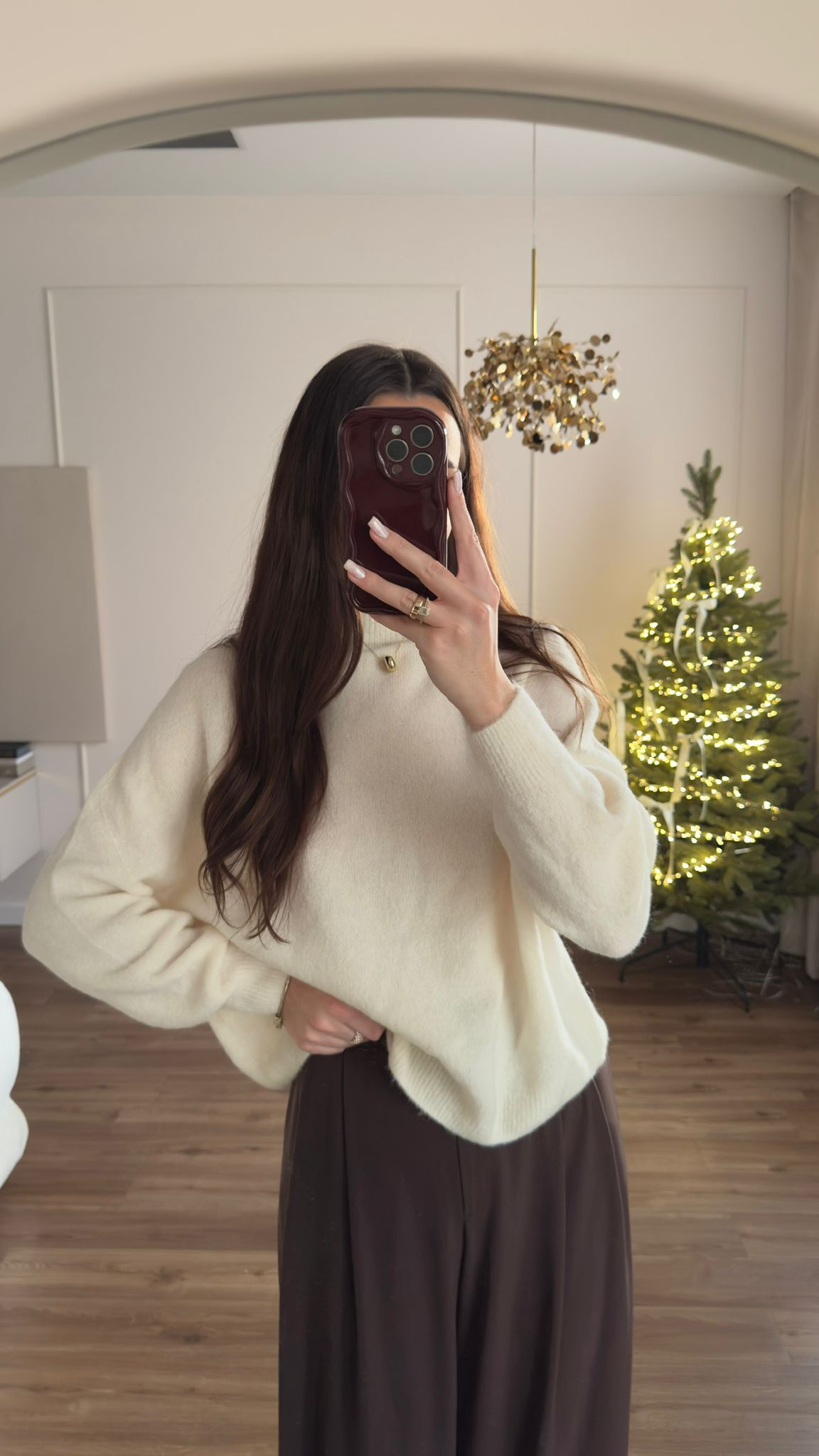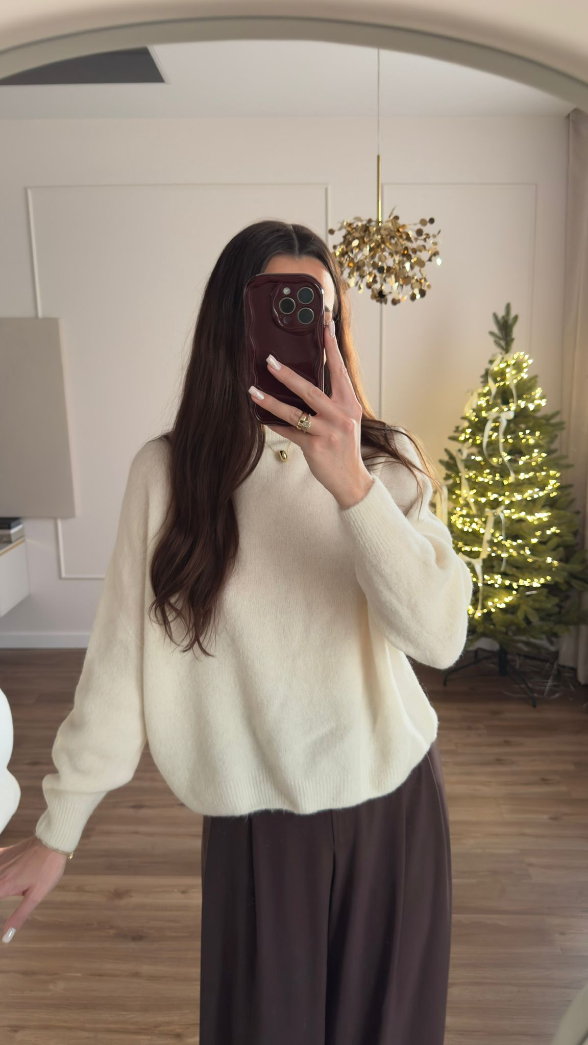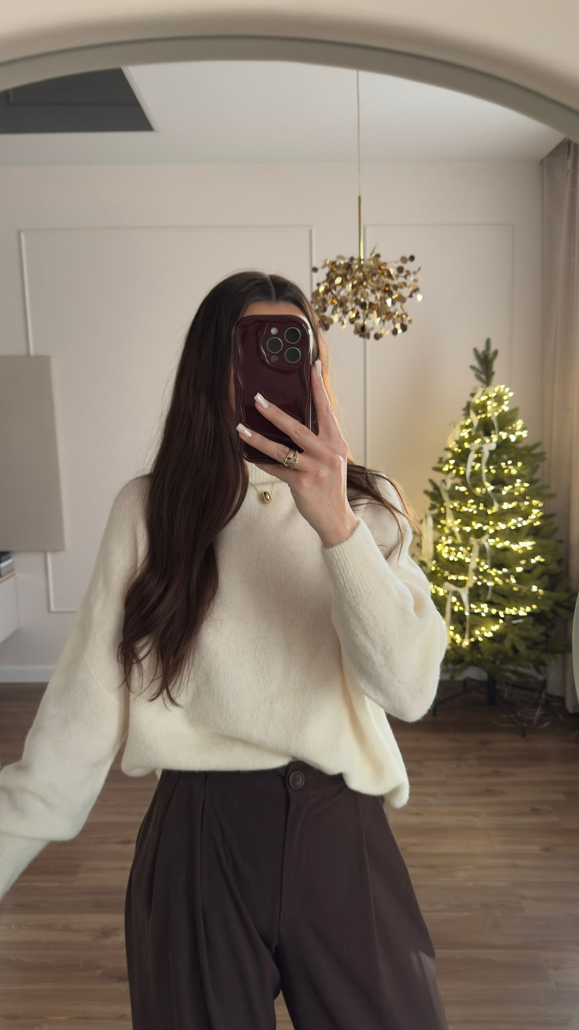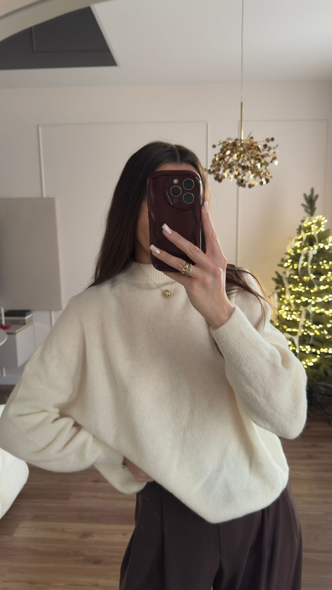 Sweter z domieszką alpaki. Klasyczny krój z okrągłym dekoltem. Lekko opuszczona linia ramion.
