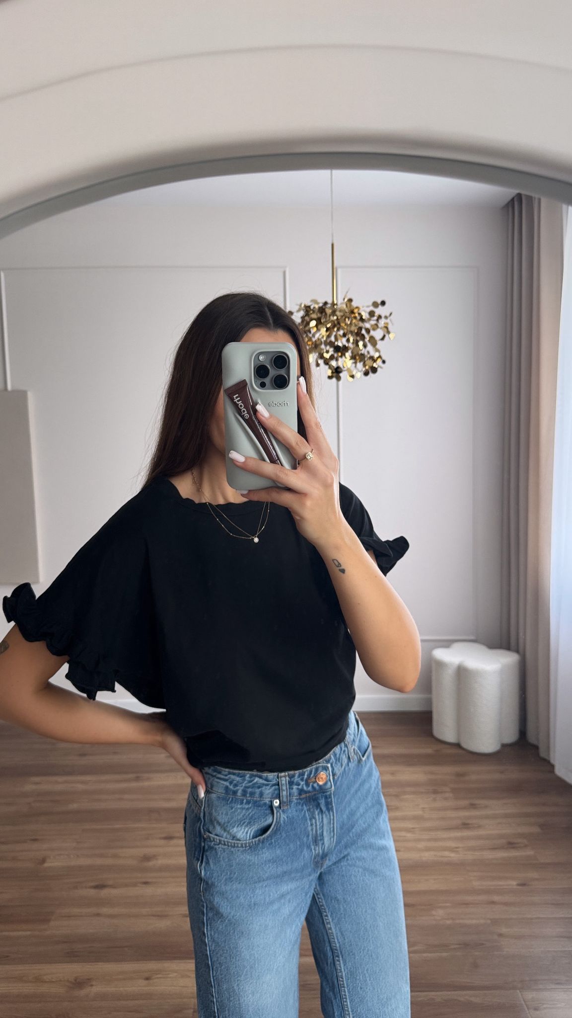 T-shirt Basic z falbankami na rękawach.